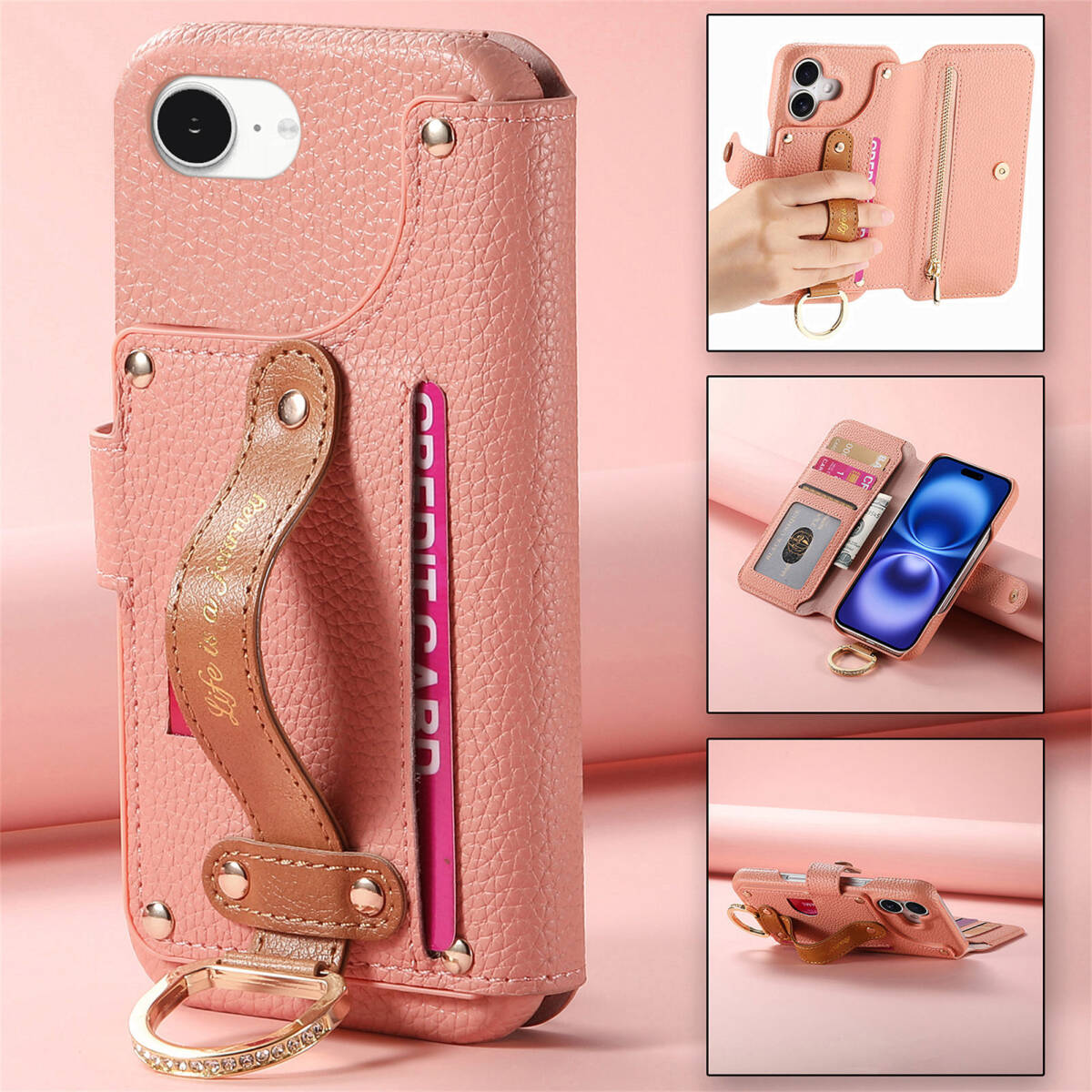 ピンク iPhone16E 用ケース 手帳型 RFID磁気防止 スキミング防止 カードポケット 落ち着いた色 横置き機能 高級PU 気質 全面保護