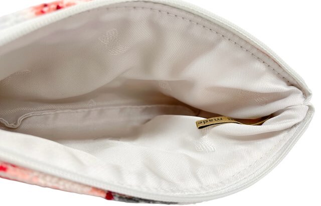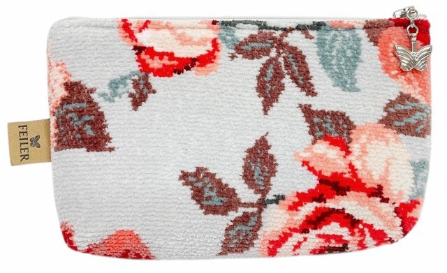コメント・・・フェイラーの花柄デザインのポーチです。間口はファスナーで閉まります。