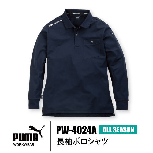 プーマ ワークウェア 作業服 ポロシャツ 長袖 【 PW-4024A 】作業ウェア PUMA 長袖ポロシャツ ■Lサイズ■ ネイビー色※ネコポス発送