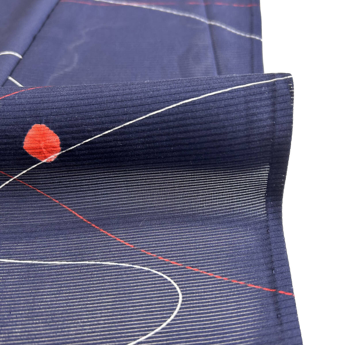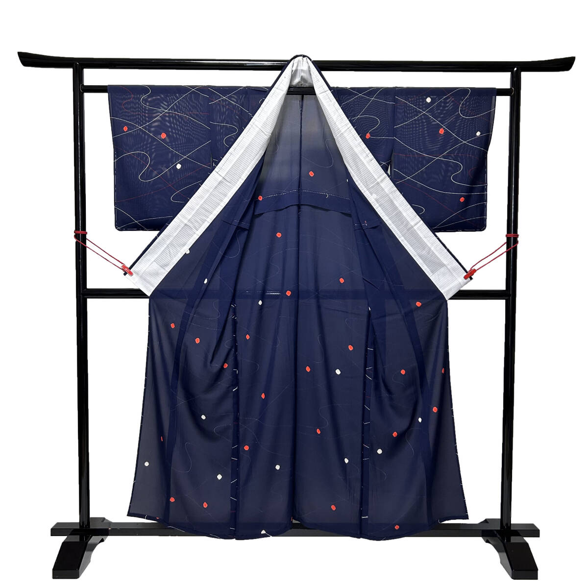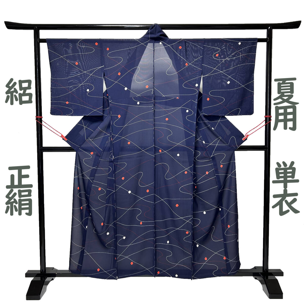 すけ感のある上質な紺色の地に、流水・ドット模様が描かれており、とても涼し気な雰囲気の綺麗なお着物です。これからの季節にお召し頂ける単衣(夏用)のお着物です。どうぞこの機会にご検討下さい!