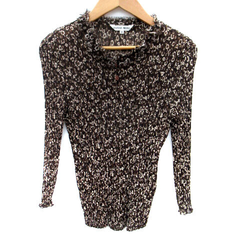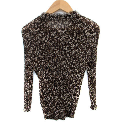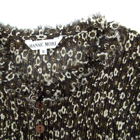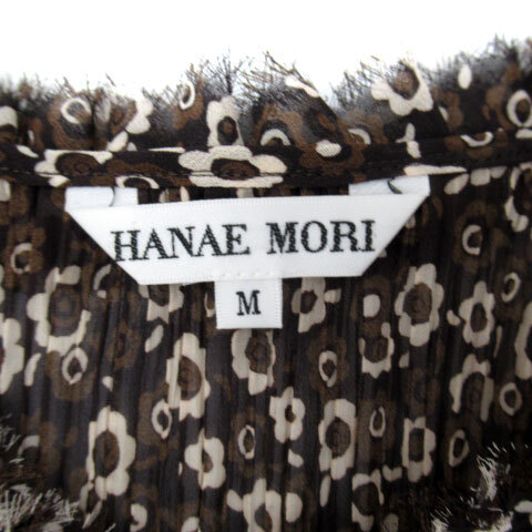 ハナエモリ HANAE MORI カットソー 七分袖 花柄 フリンジ シアー M マルチカラー ダークブラウン ベージュ /SM18 レディース