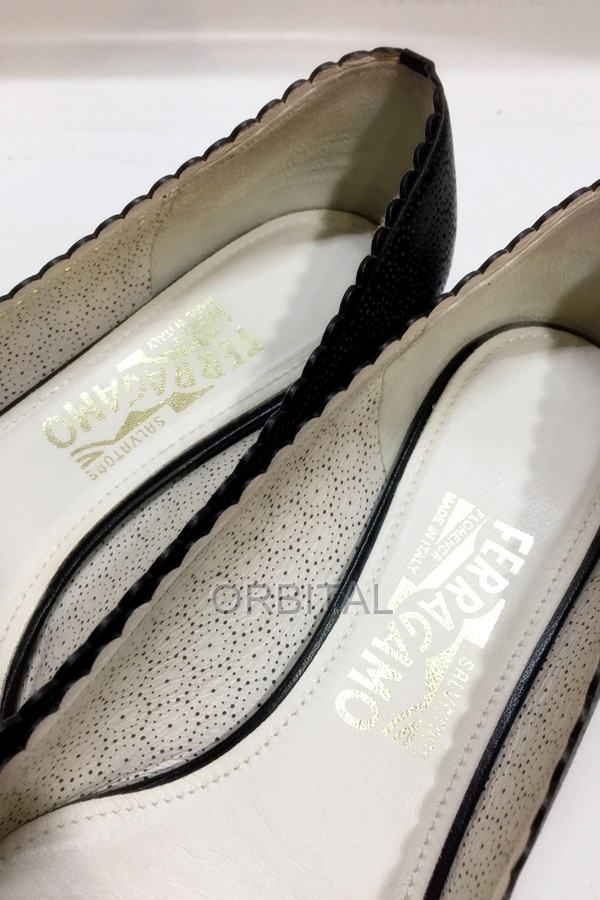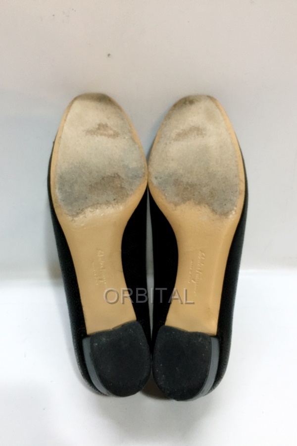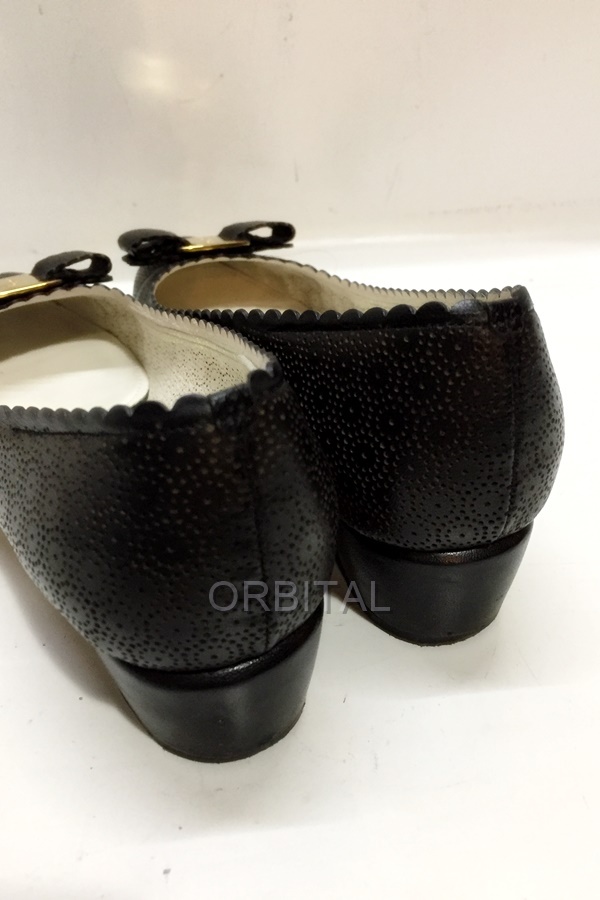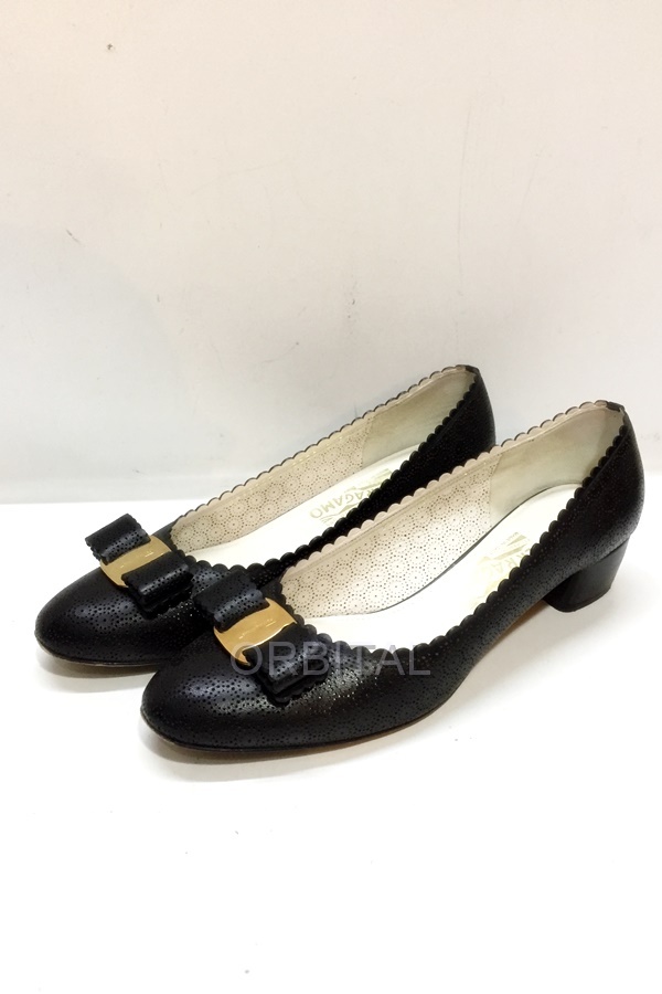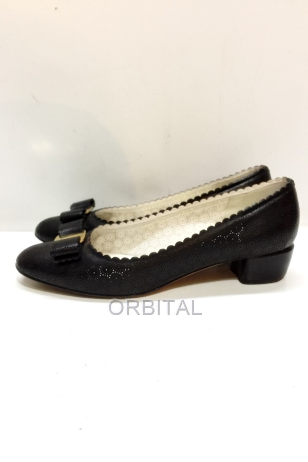 代官山)Salvatore Ferragamo サルヴァトーレフェラガモ VARA ヴァラ パンチングレザー リボンパンプス レース ブラック サイズ7.5