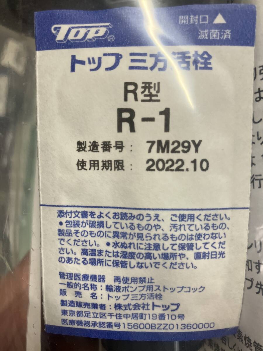 付属の三方活栓は、使用期限(2022.10)が切れております。