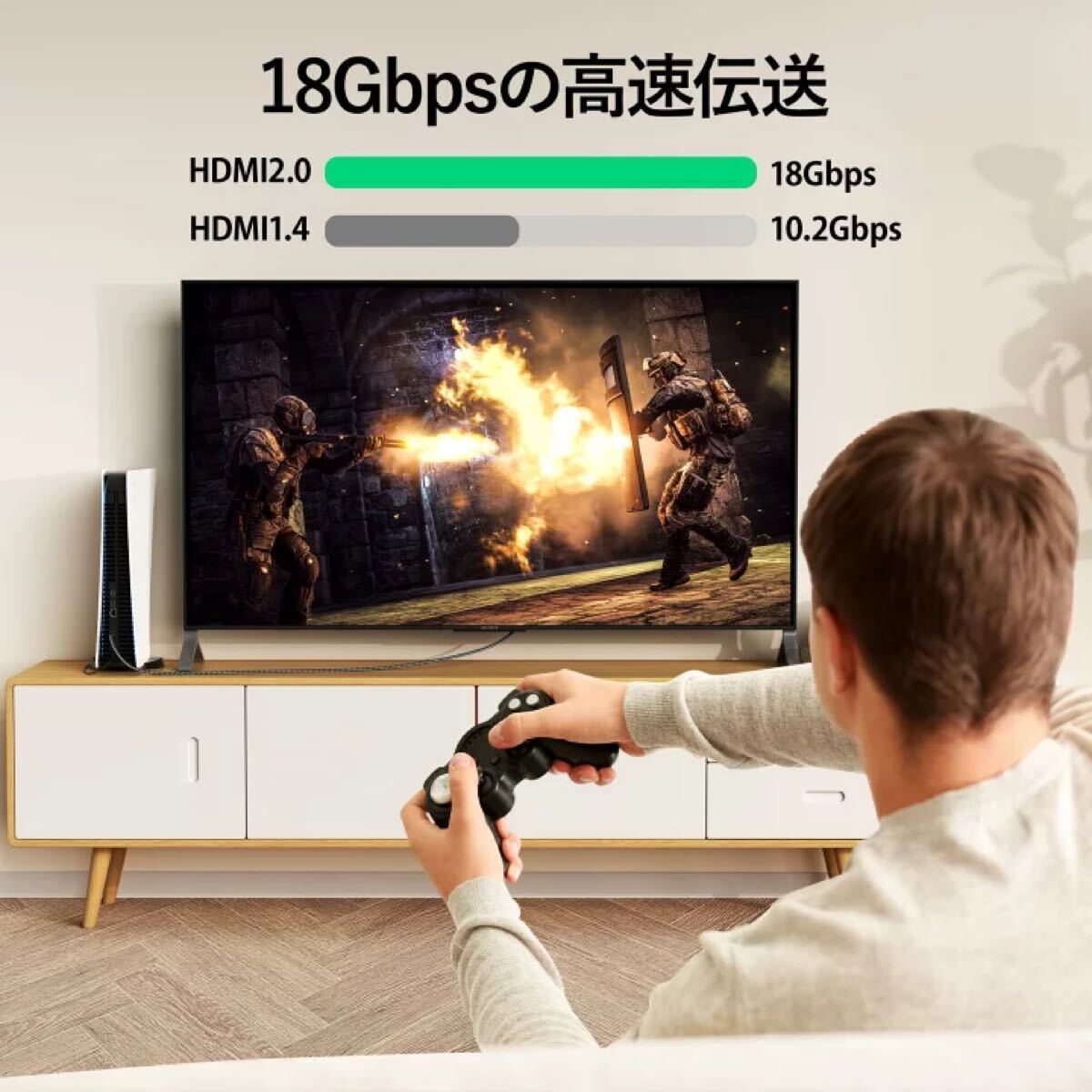安価でHDMI2.0規格 テレビやモニターとパソコン、Apple TV、Fire TV、Nintendo Switch、レコーダー・プレイヤー、AVアンプ、ゲーム機などを接続するにおすすめするHDMI-HDMIケーブル(標準タイプA-オス)です。