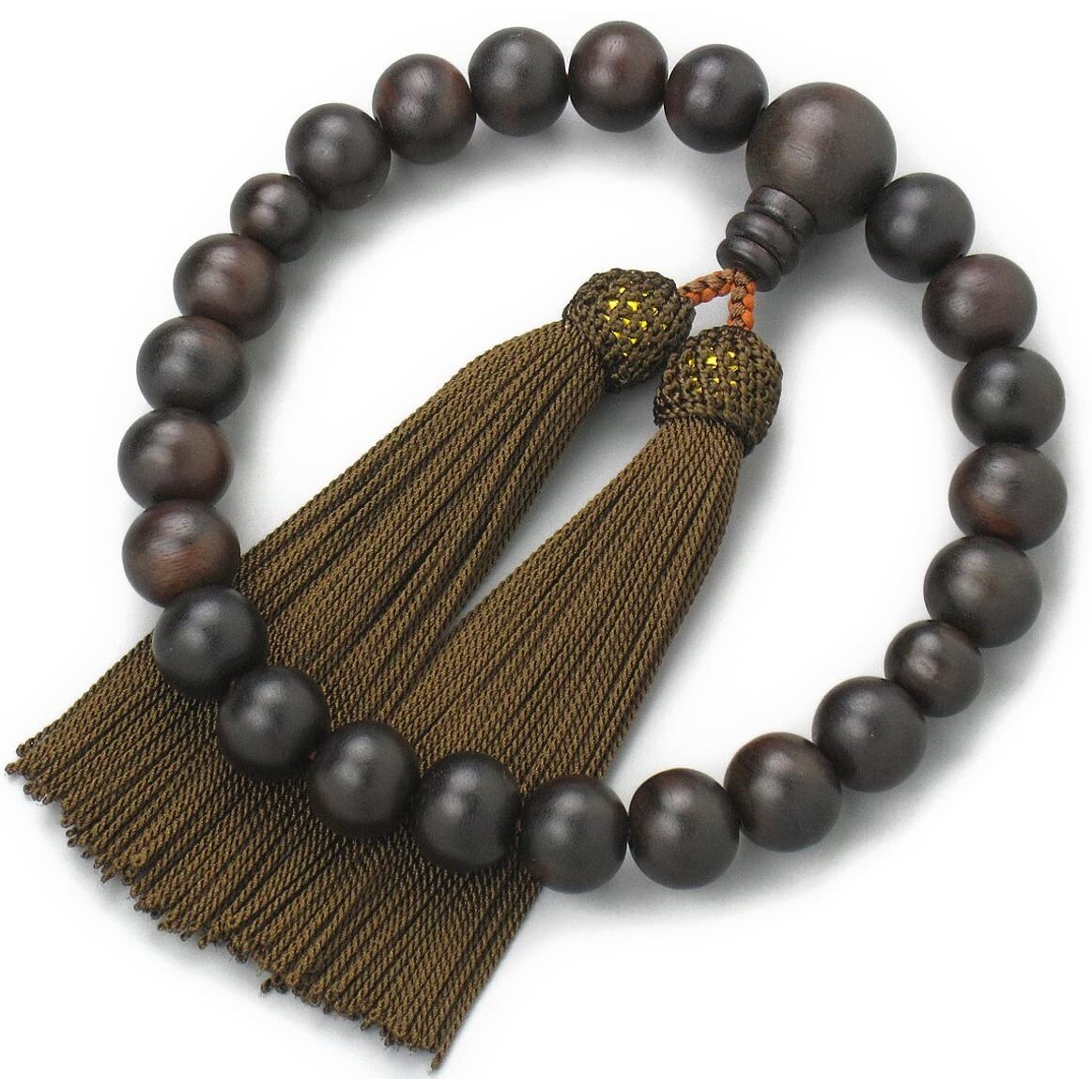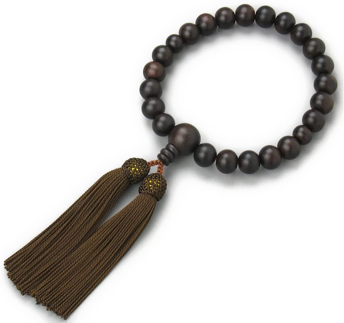 《日本製》 男性用 数珠 縞黒檀(艶消)22玉 数珠袋付