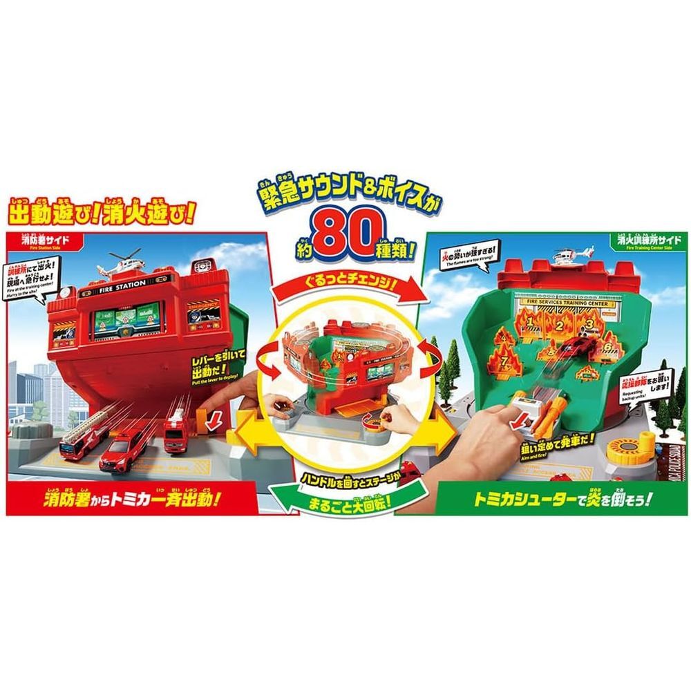 消防署が消火訓練所にぐるっとチェンジ!トミカシューターで消火せよ!約80種のサウンドとトミカを使った消防ごっこができる訓練所!