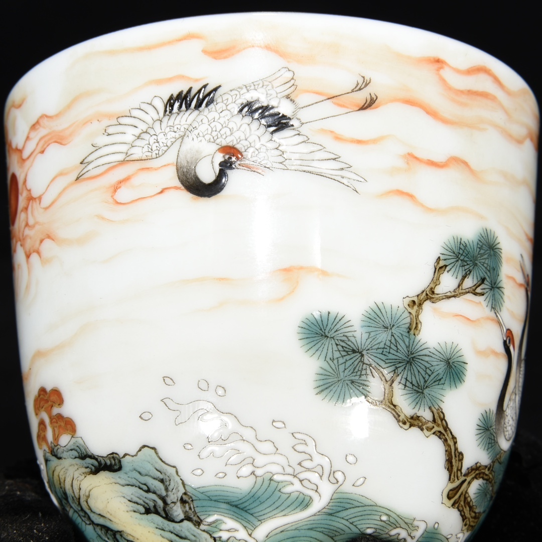 *珍品旧蔵* 大清 雍正御製 粉彩松鶴紋杯 陶芸 古陶磁器 中国磁器 極細工 唐物 中国古玩 骨董品 古美味 H45