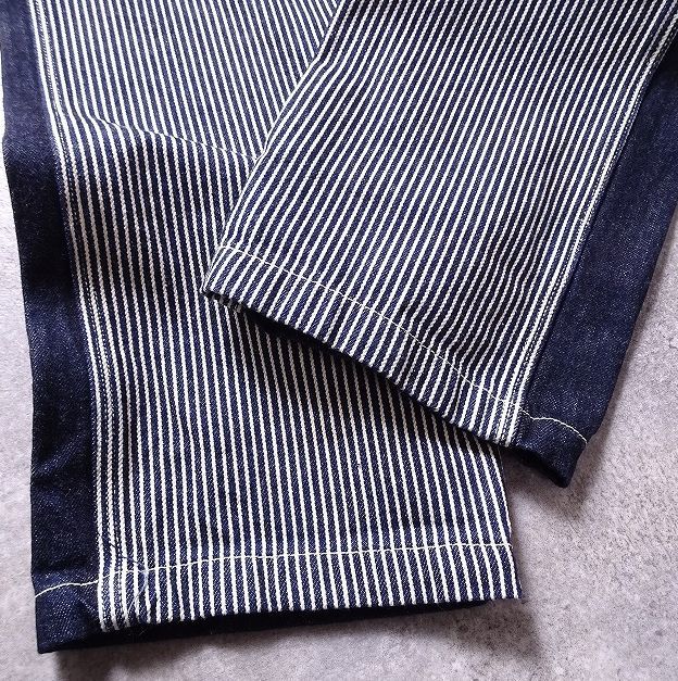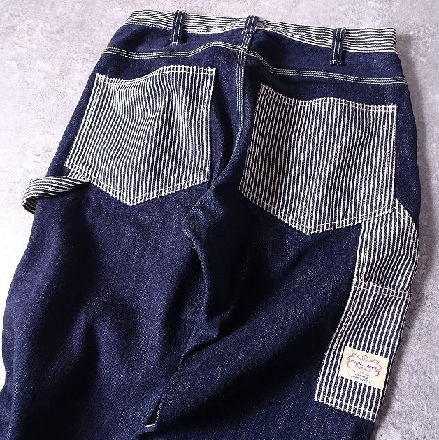 KOJIMA GENES 児島ジーンズ デニム×ヒッコリー 切替え ワーク ペインターパンツ パッチワーク 日本製 インディゴ ジーンズ メンズ (30) ●o-722