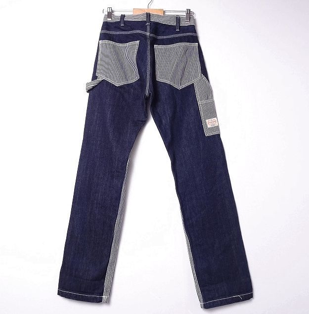 KOJIMA GENES 児島ジーンズ デニム×ヒッコリー 切替え ワーク ペインターパンツ パッチワーク 日本製 インディゴ ジーンズ (30) ●o-722