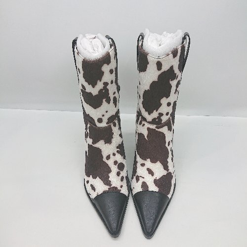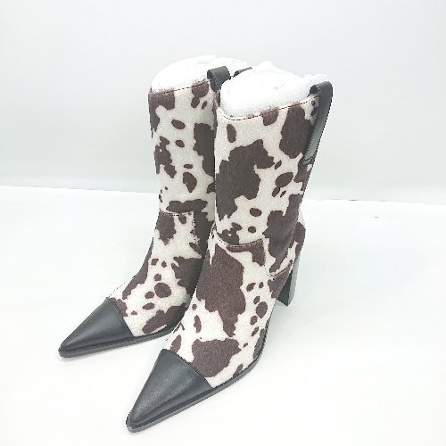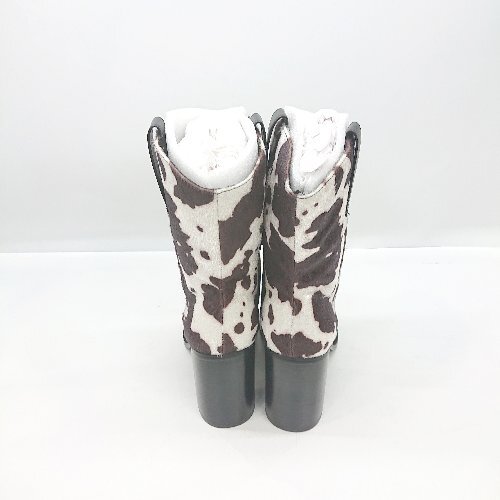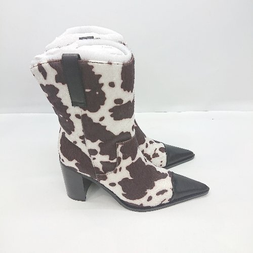 ■ ⊇ Darich 太ヒール 牛柄 ミドル丈 ウエスタンブーツ サイズM ブラウン ホワイト ブラック レディース E