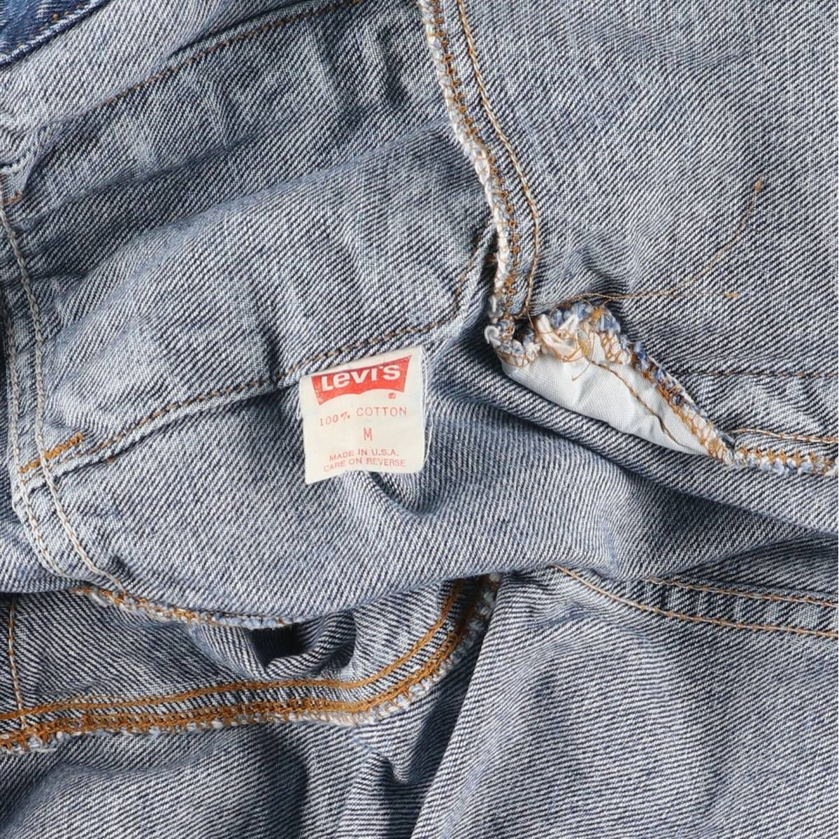 表記サイズ: M 着丈: 63cm 身幅: 57cm 肩幅: 50cm 袖丈: 53.5cm ![]() | ![]() ランク:C USEDデニムですので使用感、擦れ、色落ちなどございますが、まだまだご愛用していただけます。 古着という事をご理解の上ご注文よろしくお願いします。 【状態追記】 ●前後、襟・左右袖先に汚れ ●前、左右袖先に擦れ ●後、右腕・左右袖先に擦れ ●内側、襟に汚れ ●内側、首元・腹部に擦れ |