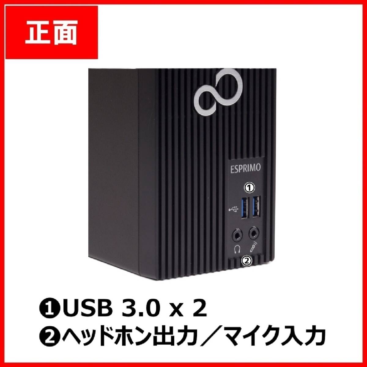 ■富士通 ESPRIMO WD2です。 超高速CPUにSSD、大容量HDD、大容量メモリを搭載したハイスペックPCです。 ■省スペースPC 高さ33.2cm x 幅8.9cm x 奥行き33.8cmのコンパクトPCです。 デザインも大変スタイリッシュです。 ■超高速Intel Core i5-7500搭載 ターボブースト時、3.8GHzの4コアが駆動しますので、非常に高速です。 (省電力時は3.4GHz動作です。) ■超高速新品SSD480GB搭載 起動ドライブとしてSSDを搭載していますので、ほとんど待つことなくすぐに起動します。 驚きの速さだと思います。 その他、起動に限らず、どのような作業も極めて高速です。 HDDとは別次元のスピードです。 新品を使用していますので、劣化はありません。 ■大容量HDD1TB(1000GB)搭載 データ保存用として十分な容量で、動画等の大きなデータも多数保存できます。 ■メモリ(DDR4)増設して大容量16GB搭載 大容量で、どんな作業も余裕でこなせます。 DDR3より高速なDDR4規格ですので、より高速です。 転送速度が2倍になるデュアルチャネル(Dual Channel)構成なので、高速動作します。 ■USB3.0搭載(正面2箇所、背面4箇所) USB3.0は、これまでのUSB2.0と互換性を保ちながら、データの転送速度が最大5Gbpsとなり、USB2.0(最大480Mbps)の10倍以上になりました。 従来の機器もそのまま使え、USB3.0対応機器同士で接続すればさらに快適になります。 ※USB2.0も背面2箇所あります。 ■DVDマルチドライブ搭載 DVDの視聴やCDの再生ができます。 ※ブルーレイ対応のPCをご希望の方々のため、ブルーレイドライブ(オプション)も用意しています。 ■ギガビットLAN対応 通信速度を1Gbpsの高速通信に対応しています。 ※光ファイバー環境でも余裕で高速対応できます。通常の回線でもバッチリ使用できます。 ■無線LAN(Wi-Fi)対応 インターネットや周辺機器など高速な無線通信ができるようになっており、幅広い環境で使用可能です。 ■4K表示対応 グラフィックスは、インテルHDグラフィックス630搭載です。 高解像度で、大画面TVやモニターなど4K表示に対応し、動画再生なども高画質で楽しめます。 ■マルチモニター対応 DVI端子とDisplayPort端子に2台のモニターをつないで、両画面に同時に表示できます。 ※オプションの変換アダプターを使えば、DisplayPortをD-subミニ15ピン(VGA)、DVI、HDMIに変換することもできます。 ■Windows 11 Pro 64bit (日本語版)搭載 最新のWindows 11を搭載・認証してあります。 面倒な修正プログラムなどすべて最新の状態になっており、商品到着次第すぐに使用できます。 ■DtoD領域あり リカバリディスクなどなしでいつでも到着時の状態にリカバリできます。 また、リカバリディスクをご自身で作成して、それを使ってリカバリすることもできます(そのためのツールが入っています)。 ■Microsoft Office 2021 (日本語版)搭載 Microsoft Office 2021をインストール・認証してあります。 Word、Excel、PowerPoint、Access、Outlook、OneNote、Publisherがプリインストールされており、即使用可能です。 ※Office 2021は、Office 2019の基本機能をそのままに新しい機能を追加した最新Officeです。 ※Office 2021のExcel、Word、PowerPointでは、「自動保存」、「画像やアイコンなどの挿入」、「OpenDocument(ODF)1.3」などが追加されています。 ※下位互換性を保っていますので、Office 2019やOffice 2016のファイルなどは今まで通り扱えます。 ※最新Office 2021は「Windows 11 対応版」です。将来的に考えても安心です。 ※永続ライセンス版(使用期限:永久無期限)です。 ■便利なソフト搭載 ①セキュリティ Microsoft Windows Defenderを搭載しています。 安心のMicrosoft社製セキュリティ・ウイルス対策ソフトウェアです。 追加料金不要で使い続けられます。 ※ウイルスパターンファイルは自動更新され、常に最新の脅威から保護されます。 ※出品前にすべてのファイルをスキャンし、安全であることを確認済みです。 ②ブルーレイビデオ、DVDビデオ、動画再生 一般的な市販のブルーレイビデオ、DVDビデオ、動画、CD、メディアファイルなどのコンテンツの再生ができます。 面倒な設定がなく、再生が可能です。 ③DVD、CD作成 DVD、CDが作成できるソフトが入っています。 大切なデータに暗号保護をかけてディスクへ記録が可能です。 ④動画編集 動画、写真を組み合わせてムービーを作成が可能なソフトが入っています。 ⑤メール 最新のMicrosoftメールソフトがインストールされています。 ■電源ケーブルをご希望の場合は、落札後メッセージにてお知らせください。 ■清掃済みですが、中古につき、落ちない汚れやキズはある程度あります。画像は流用です。 ■フルHD表示(1920x1080)用に設定してありますので、もしそれよりも低い解像度のモニターでお使いの場合、落札時にお申し出ください。 そのモニター用に解像度を設定します。 ■オプションとして、以下のものを用意できます。 ①D-subミニ15ピン(VGA)変換アダプタ:1980円 DisplayPortをD-subミニ15ピン(VGA)端子に変換します。これで、D-subミニ15ピン(VGA)出力ができるようになります。 ②DVI変換アダプタ:1980円 DisplayPortをD