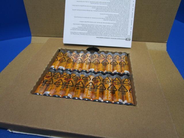 1.5Vの単4アルカリ乾電池20本パック。使用推奨期限10年で防災の備えにもおすすめ。