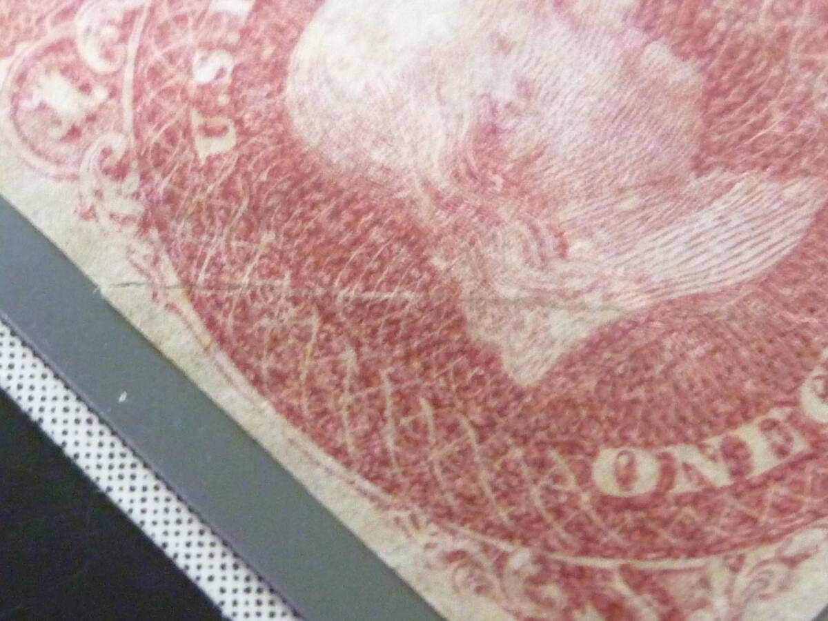 21MI M №E アメリカ切手 プルーフ 1861年 SC#63 1c 無目打 切手紙 補修跡有