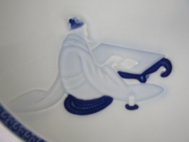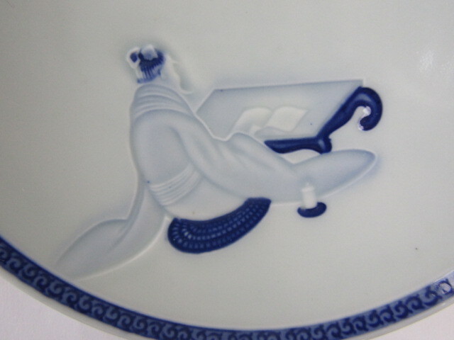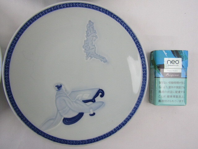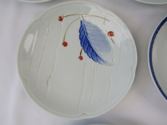 ◇伊万里焼 染付 小蓋皿 寿老人文5客 桜桃文5客 中皿 ② 0513-3◇