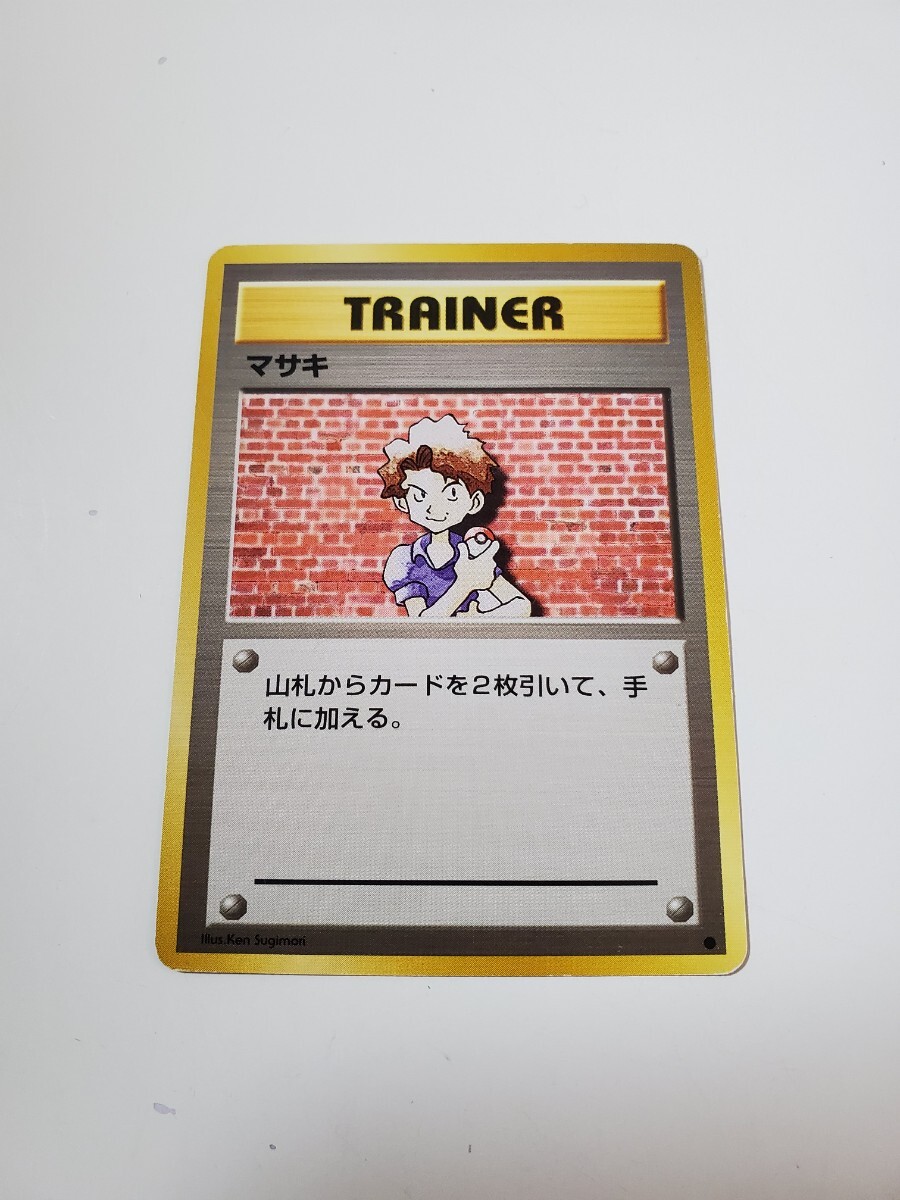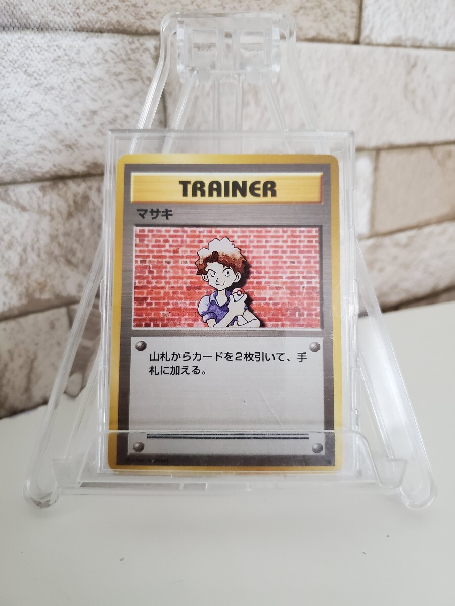 25年以上前に自分が子供の頃、集めていた旧裏面の拡張パック第1弾のマサキのポケモンカードになります。