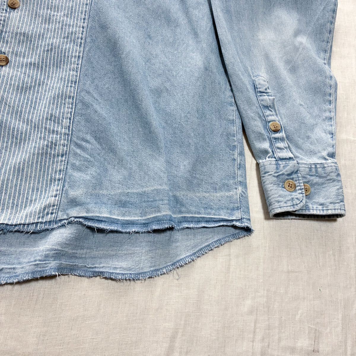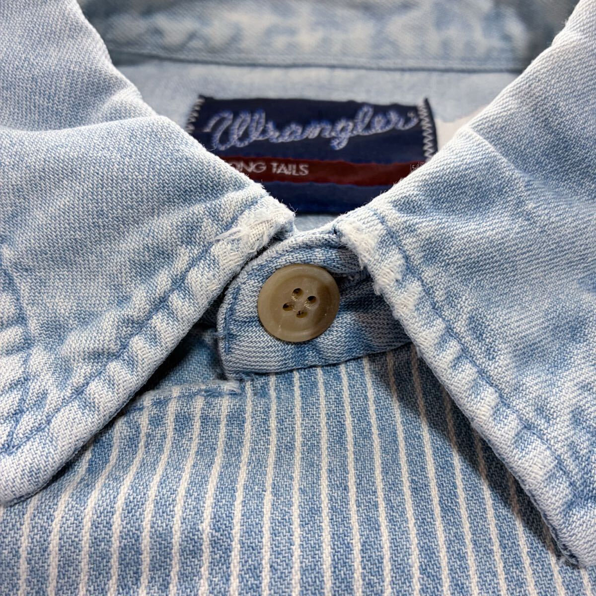 90s Wrangler ラングラー ストライプ ノーカラー デニムシャツ XL ビンテージ 27MW 50s 60s