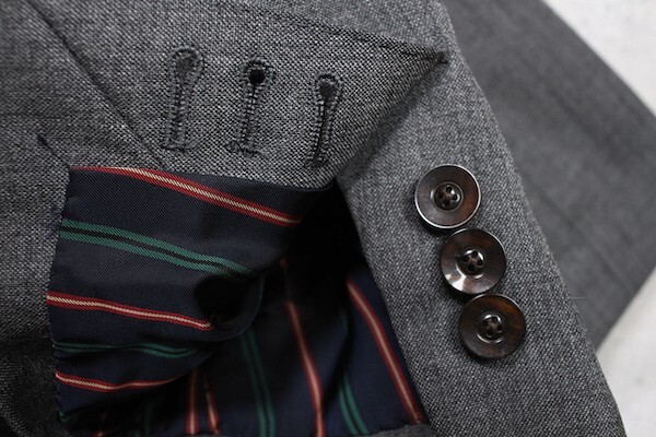 仕様:背抜き仕立て、二つ釦、サイドベンツ、ノータック、AMFステッチ、本切羽