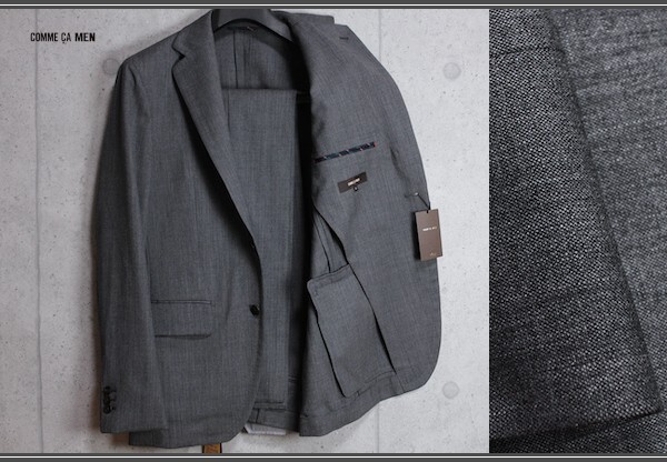 コムサ系のメインブランド、コムサメン(COMME CA MEN)のサマーウール100% 無地 アンコン 本切羽 ストレッチ セットアップ スーツ。