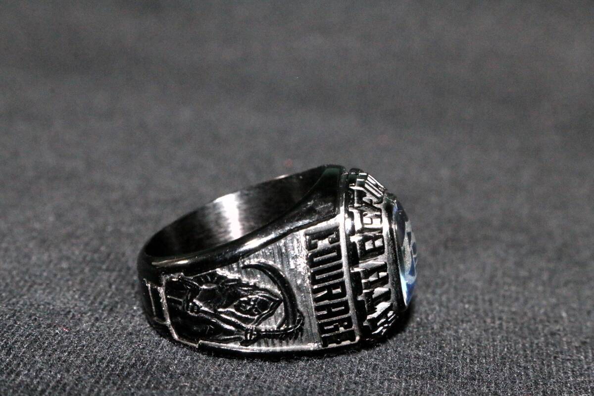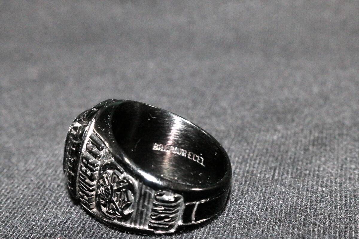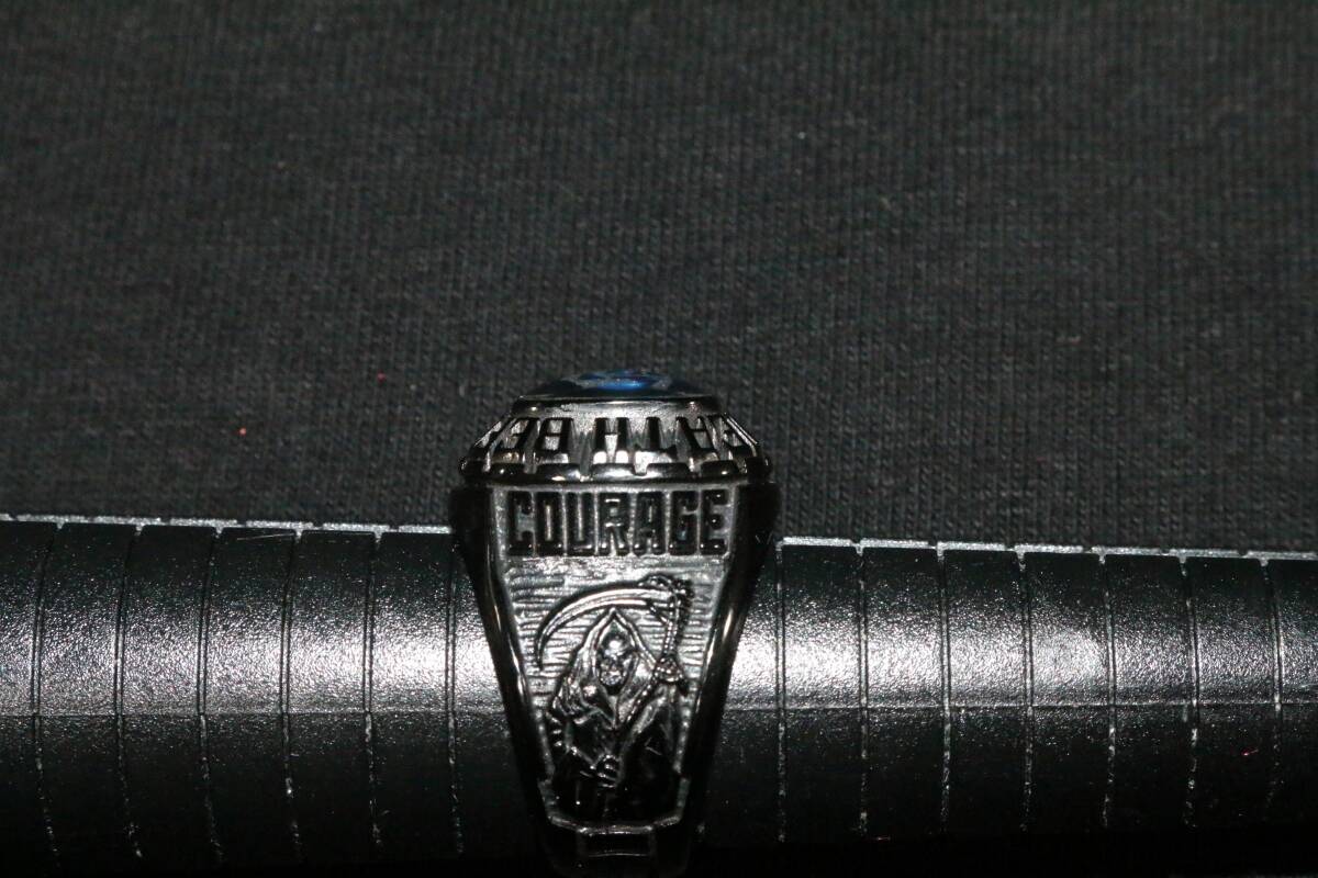 沖縄米軍 BALFOUR ECEL 刻印 DEATH BEFOR DISHONOR USMC ブラックカラー カレッジ リング 約23号 指輪 中古 ファッション用などに
