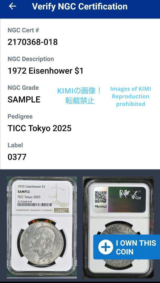 1972 $1 Eisenhower Dollar NGC SANPLE TICC 2170368-018