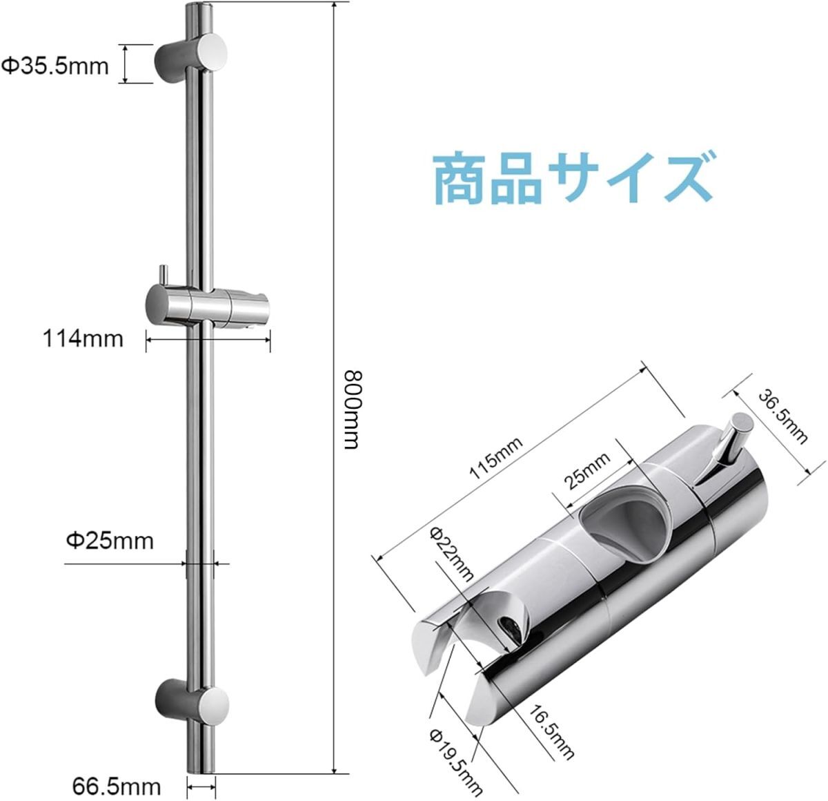 OFFO シャワースライドバー 800mm シャワーバー 浴室用 シャワーヘッド スライドバー 360°散水角度調節可能 取付簡単 日本語取付説明書付 ステンレス製 取付簡単 クロムメッキ