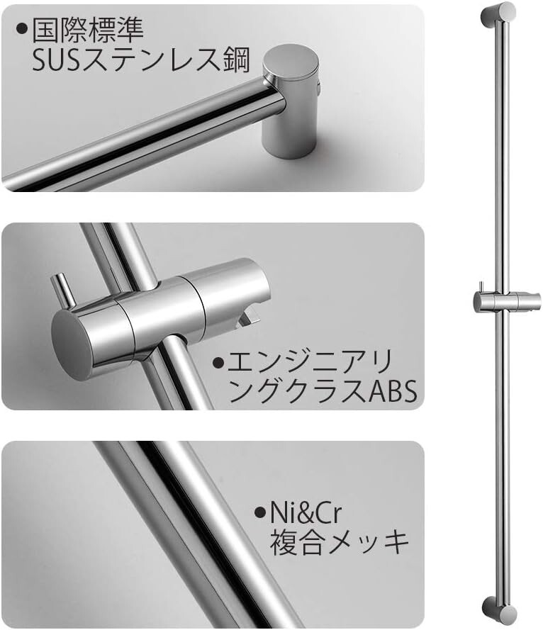 • [耐久性] スライドバーは国際標準のステンレス素材を採用し、堅固で長持ちできます。フックは高強度のABSを使い、軽くて取付も簡易です。
