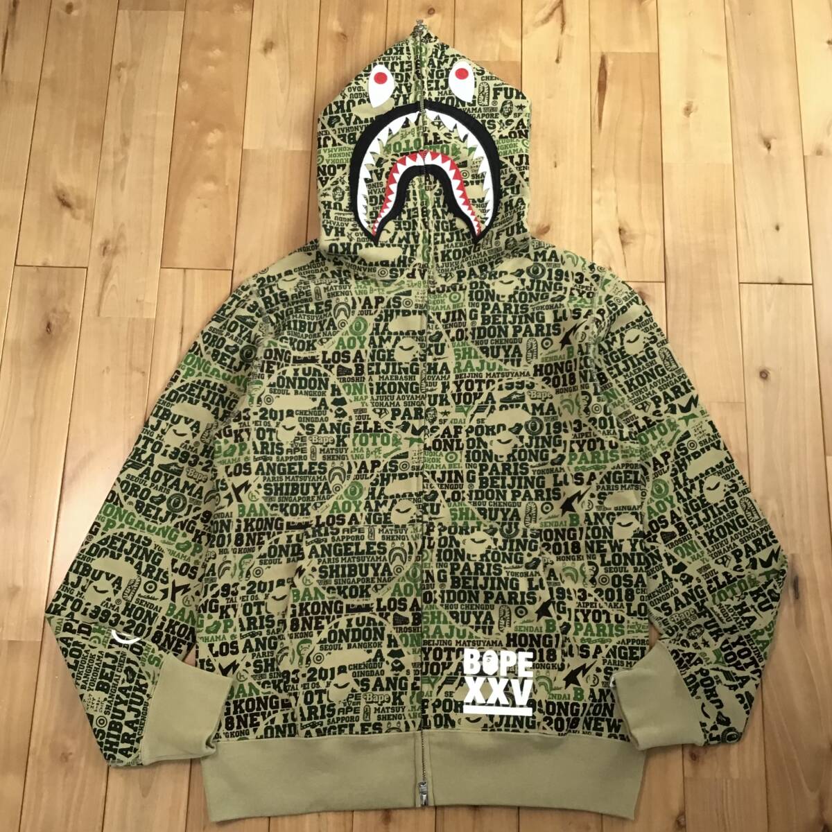 a bathing ape XXV CITIES CAMO green シャークパーカー Lサイズ です★