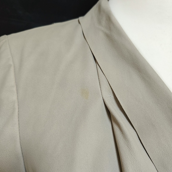 コンディション備考 | 前身頃全体に薄汚れ、左前身頃胸元にシミ、襟周り、袖裏に汚れ、右袖脇辺りにキズがございます。使用感は見受けられますが、まだまだお使いいただけます。保管によるシワはご容赦ください。 |