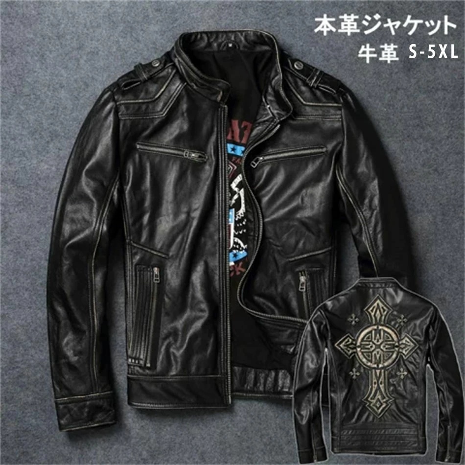 ★新品★メンズ LWMZ45-Mサイズ ブラック 黒 本革ジャケット 牛革ライダースジャケット 革ジャン レザーコート 高品質 防風 防水 防寒 耐磨