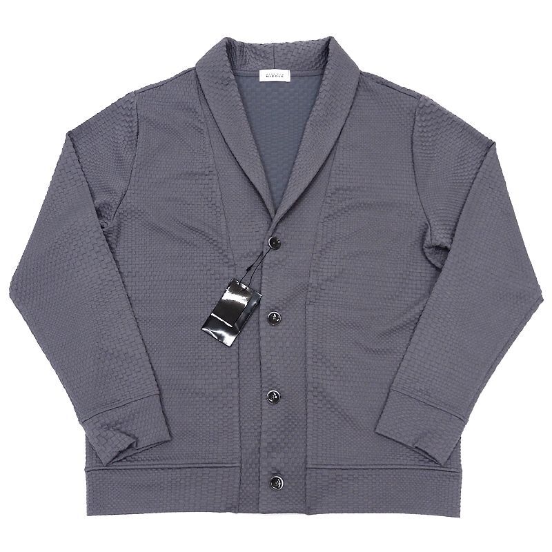 D06213 新品 monsieur NICOLE ジオメトリックブリスタージャカード カーディガン 【サイズ:46】 グレー ムッシュニコル メンズ