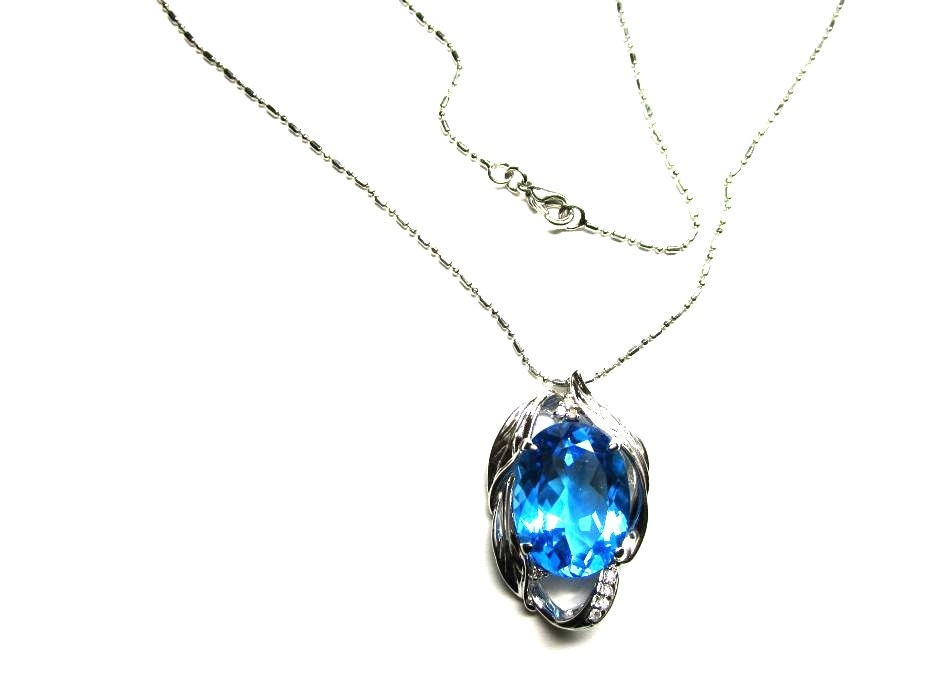 (1787) K18WG ブルー・トパーズ ダイア付 ペンダント