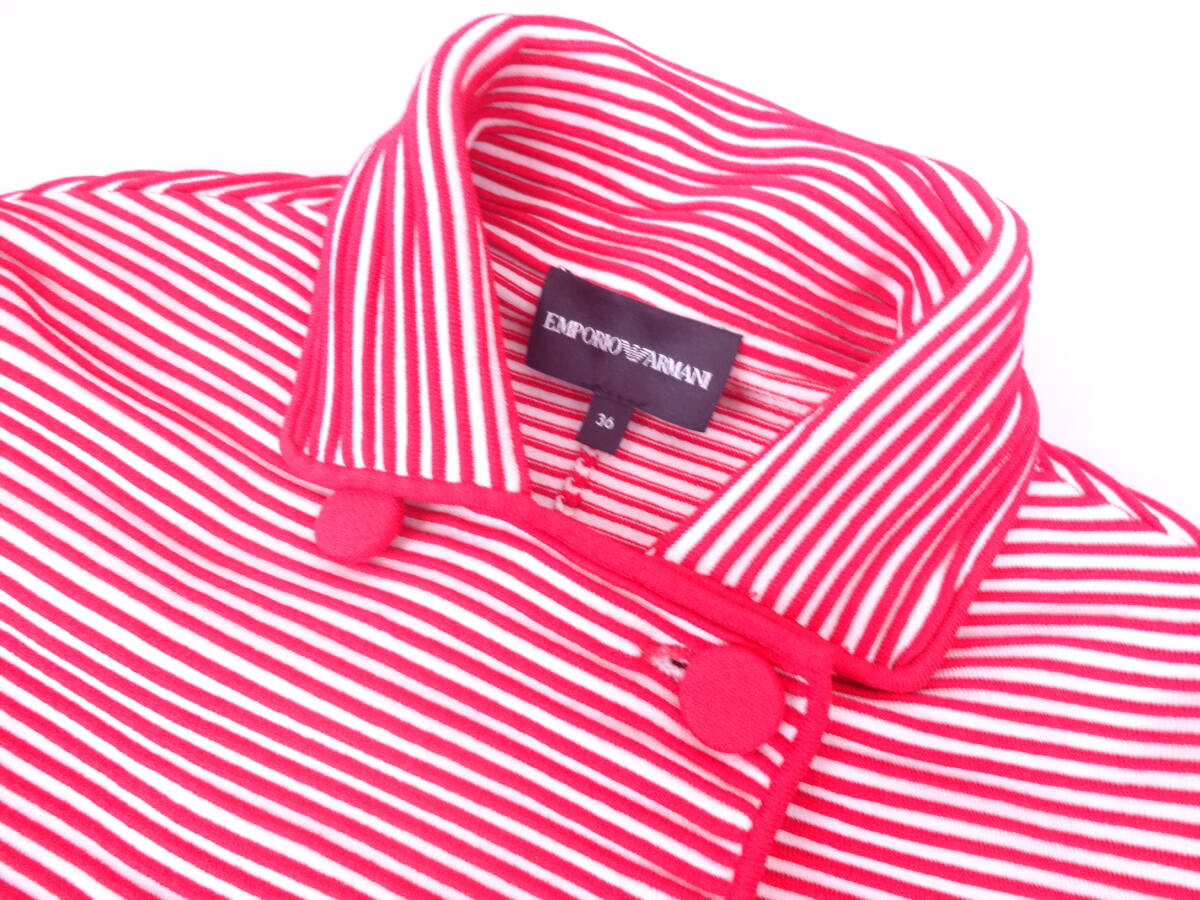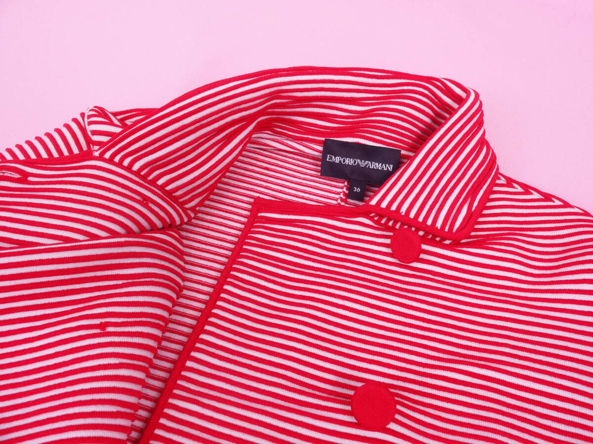 EMPOLIO ARMANI エンポリオアルマーニ 凹凸細ボーダー ジャージ素材 ソフトジャケット レッド ホワイト ほぼ新品