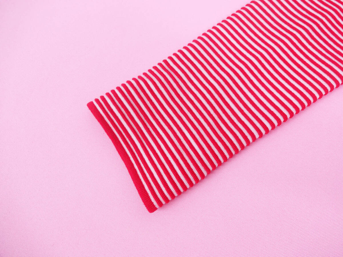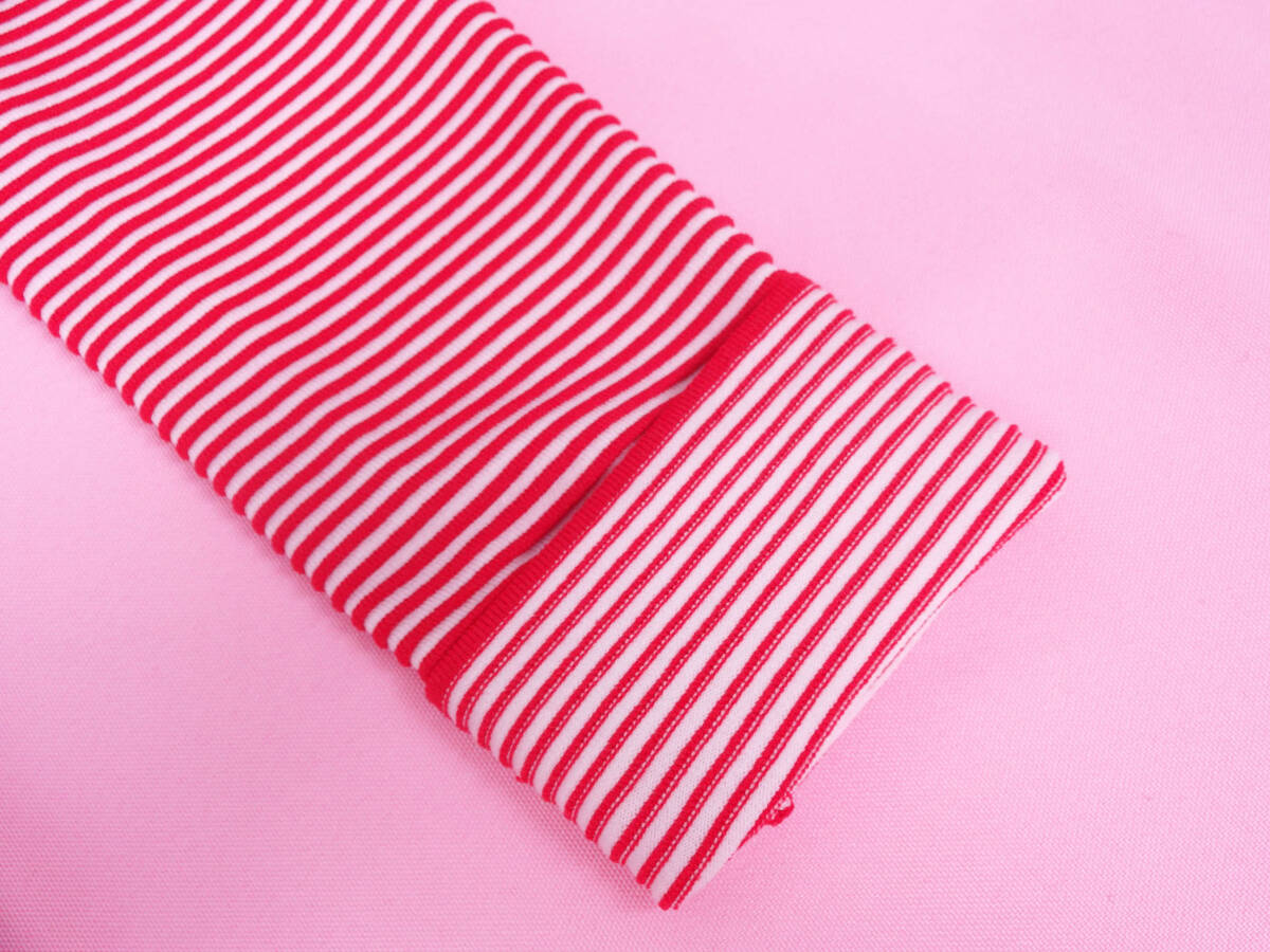 ホワイトとレッドの細い凹凸のボーダーで、生地感にとてもニュアンスがございます。