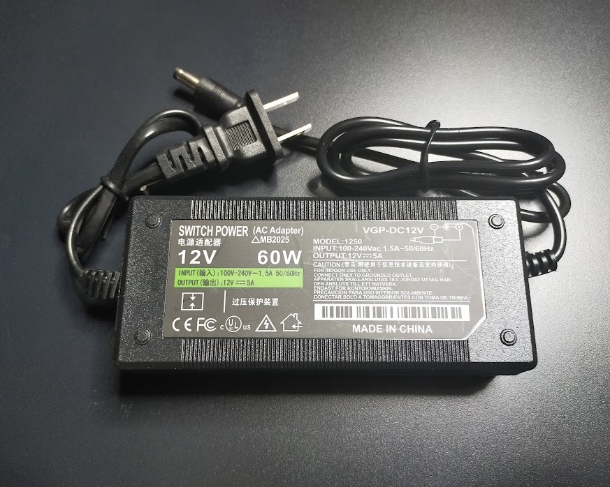 変換プラグ付 ACアダプター 12V5A プラグサイズ5.5×2.5/2.1mm ノイズフィルター付き(12V 4A) AC/DCアダプター スイッチング電源、