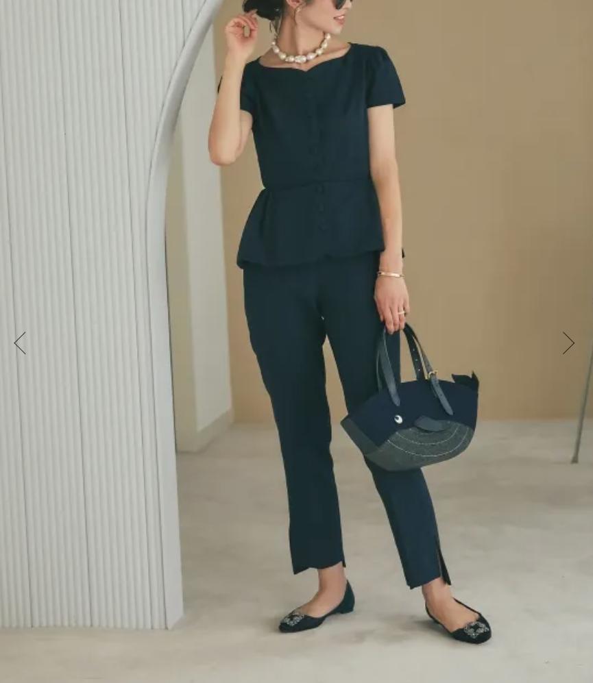 セブンテン SEVEN TEN MIHO KAWAHITO スラックス パンツ ベーシック ネイビー 紺 センタープレス 美シルエット レディース Mサイズ フォーマル カジュアル オフィスコーデ
