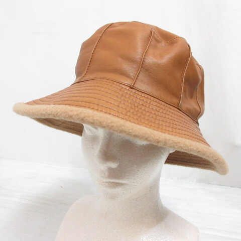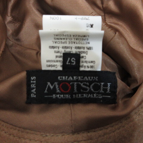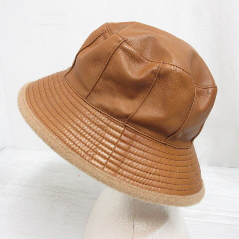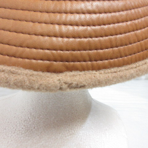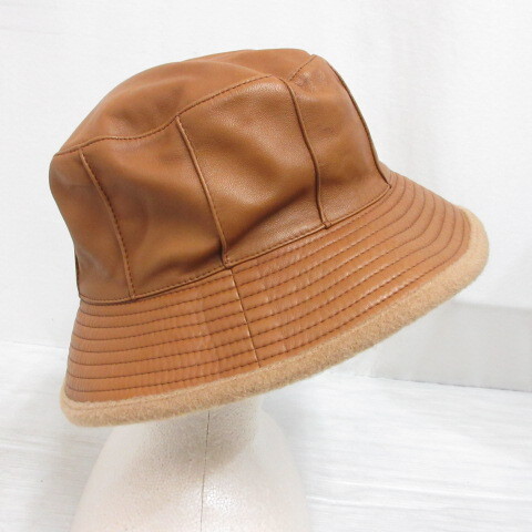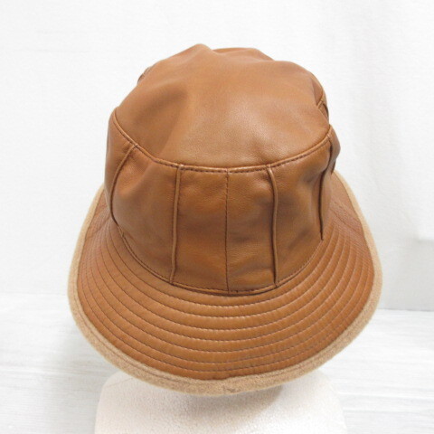 エルメス HERMES MOTSCH pour HERMES ラムレザー バケット ハット 帽子 57 キャメル 羊皮 つば裏ウール 裏地付き フランス製 正規品