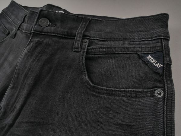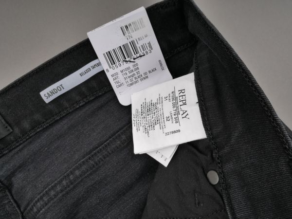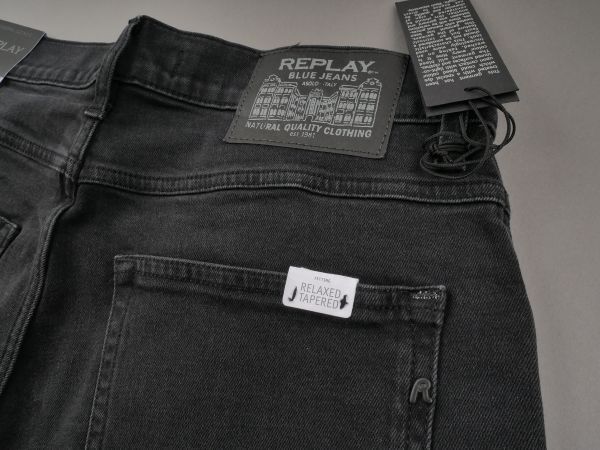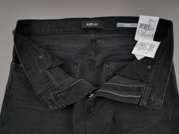 【新品未使用】REPLAY リプレイ◆Italy◆W31 L32◆SANDOT 11oz BLACK DENIM◆リラックステーパード ストレッチ ブラック デニム パンツ