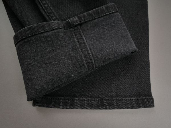ブラックデニムに洗いをかけて部分的にエイジング加工を施したこなれた仕上げです。