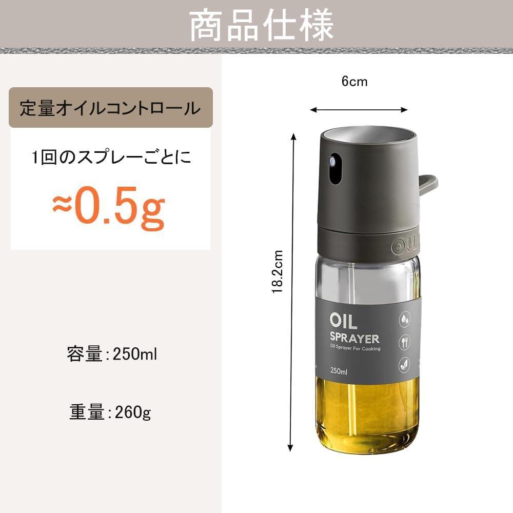 Phyxiul オイルスプレー オリーブオイル スプレー 耐熱ガラス 霧吹き 料理用 オイルボトル オイル噴霧器 液だれしない オリーブオイル お酢 サラダ オイル容器 キッチン用品 250ml (ダークグレー)