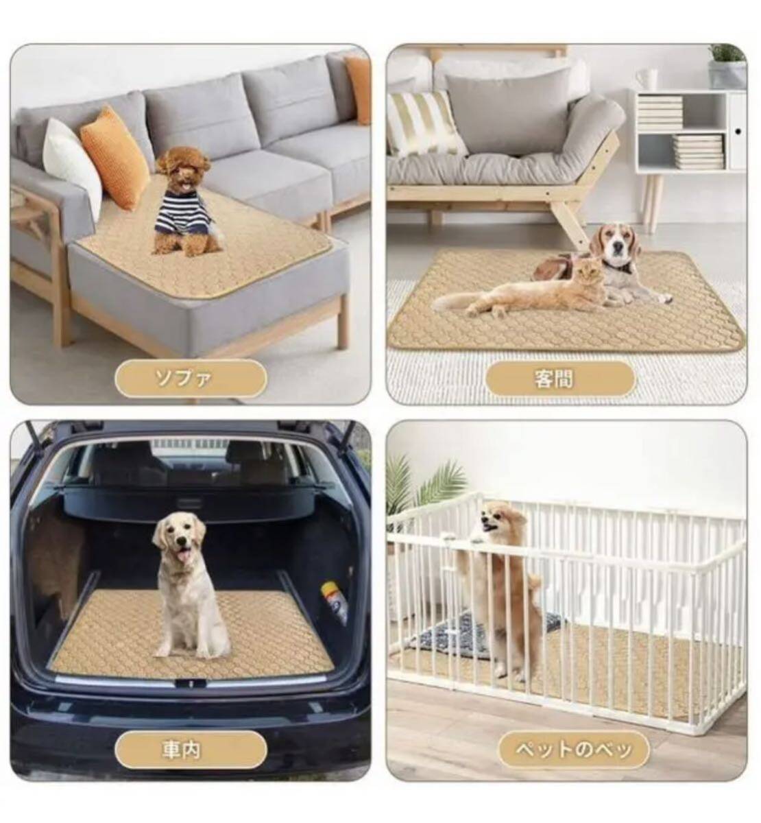 【用途広い】フローリングだけではなく、ソファ、ケンネル、キャリーバッグ、サークルや犬ケージにも使え、車内の敷物としても素晴らしいです。お出かけ時に使うのも便利です。