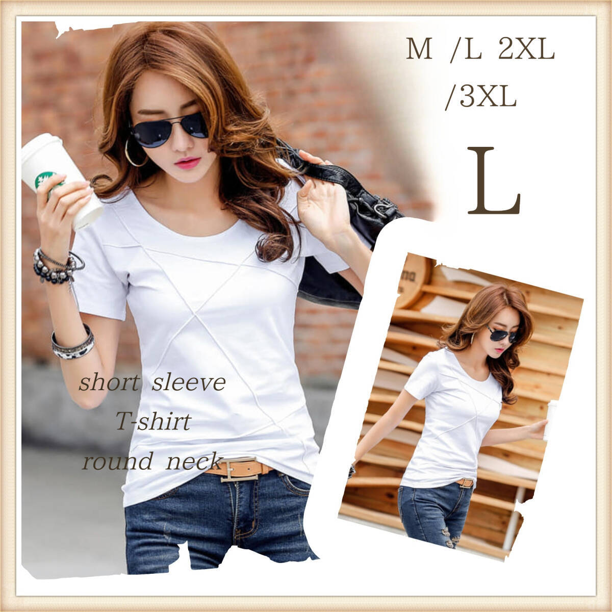 L ラウンドネック 半袖 デザイン Tシャツ 白 シンプル スタイル美 クール カットソー かっこいい 1枚できまる 新品