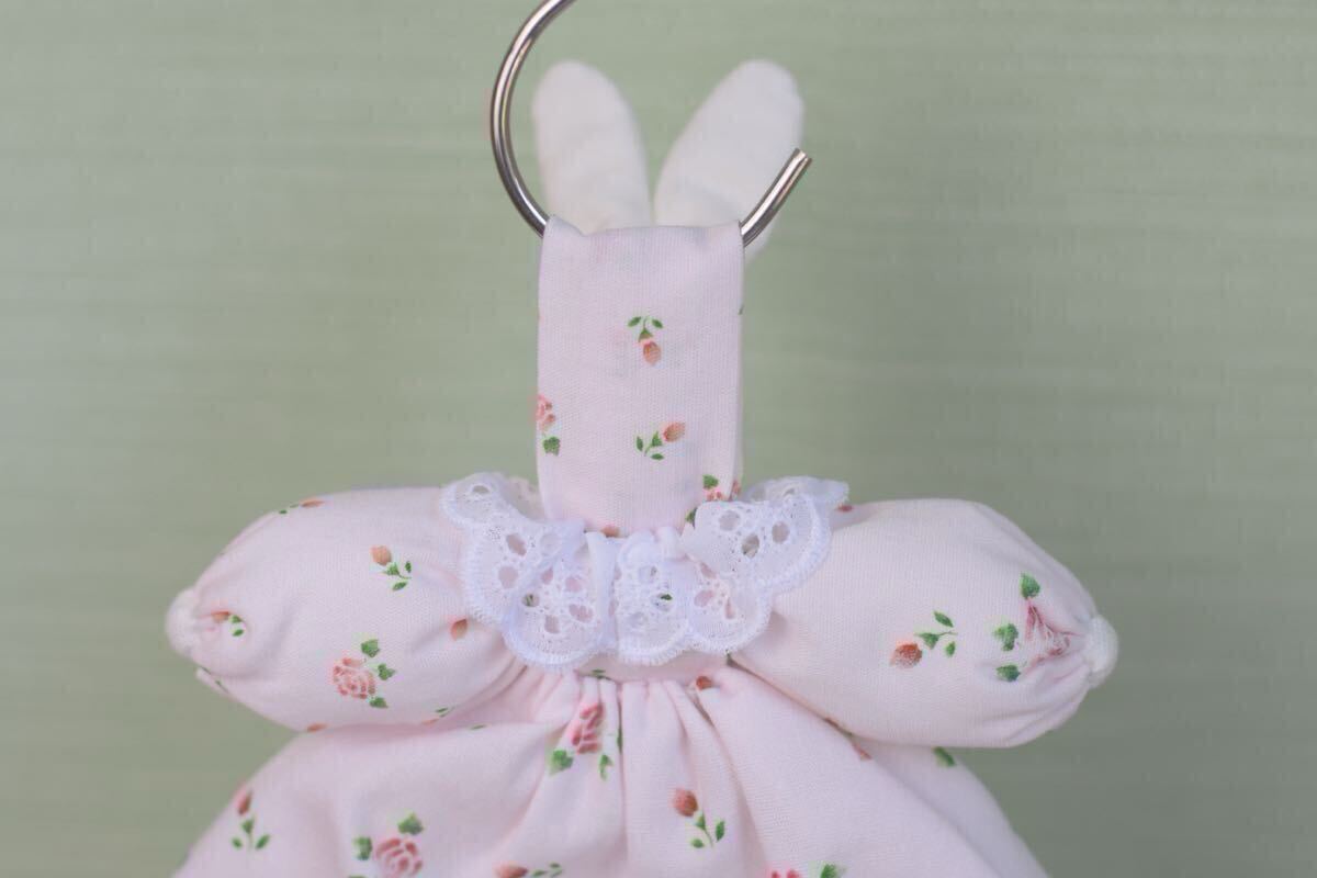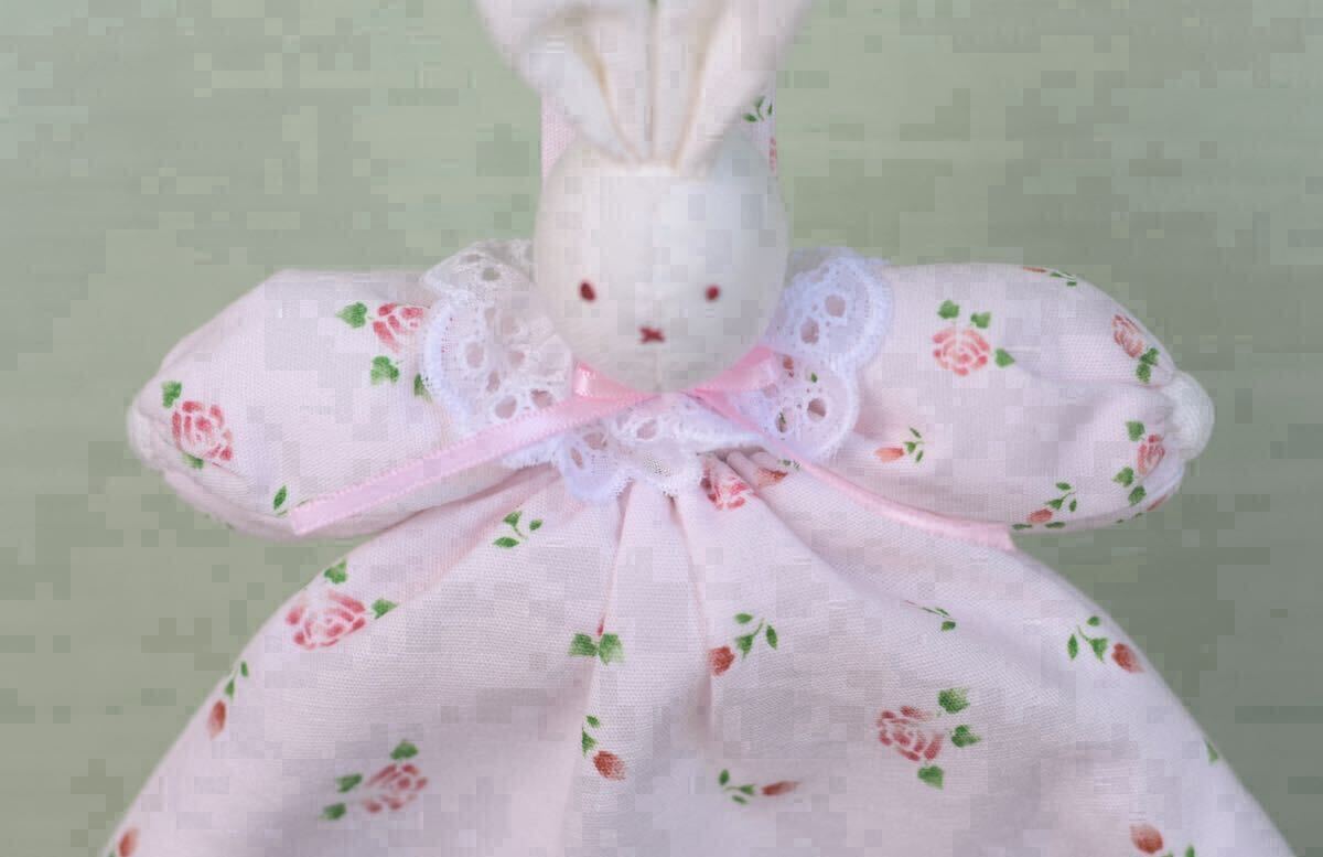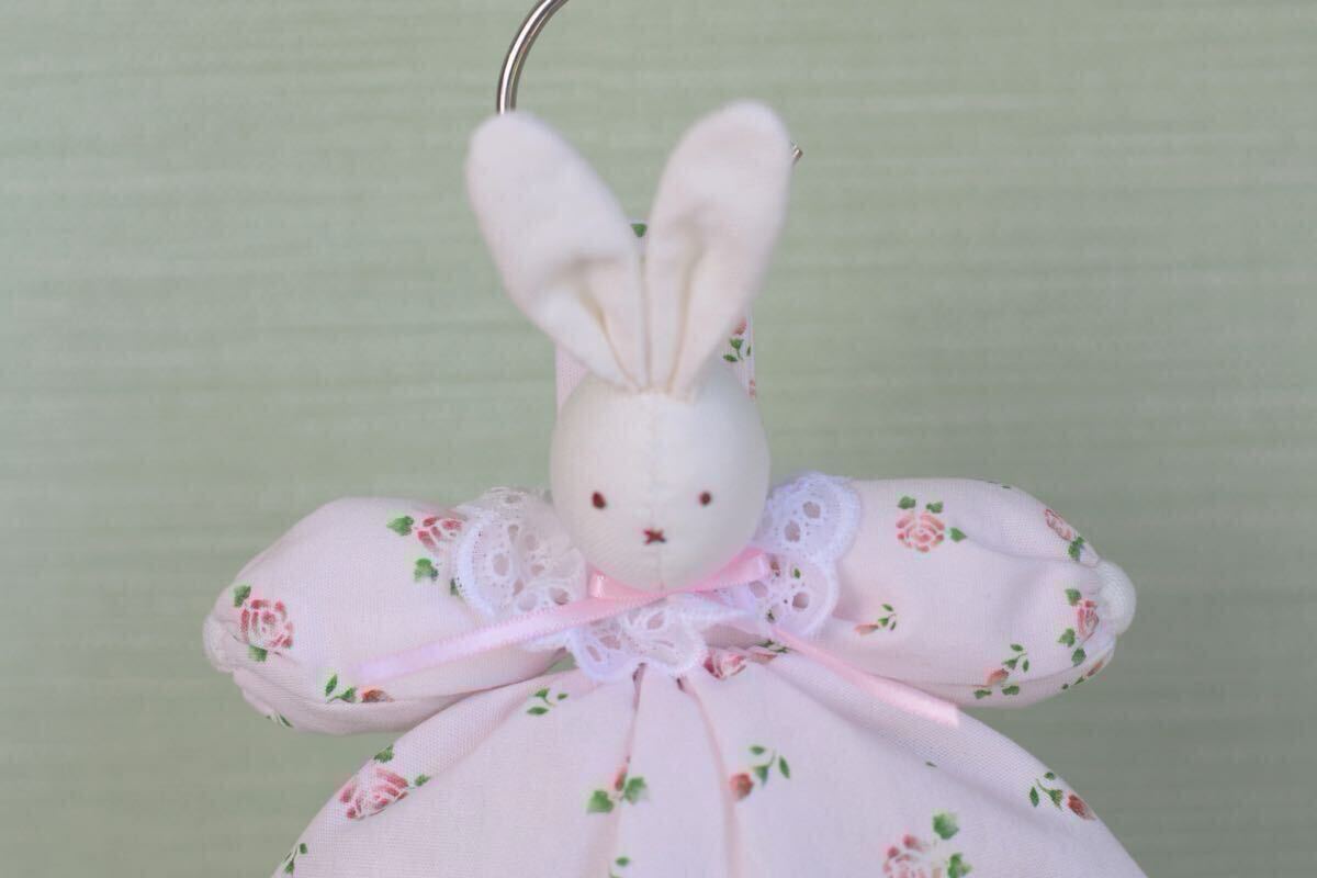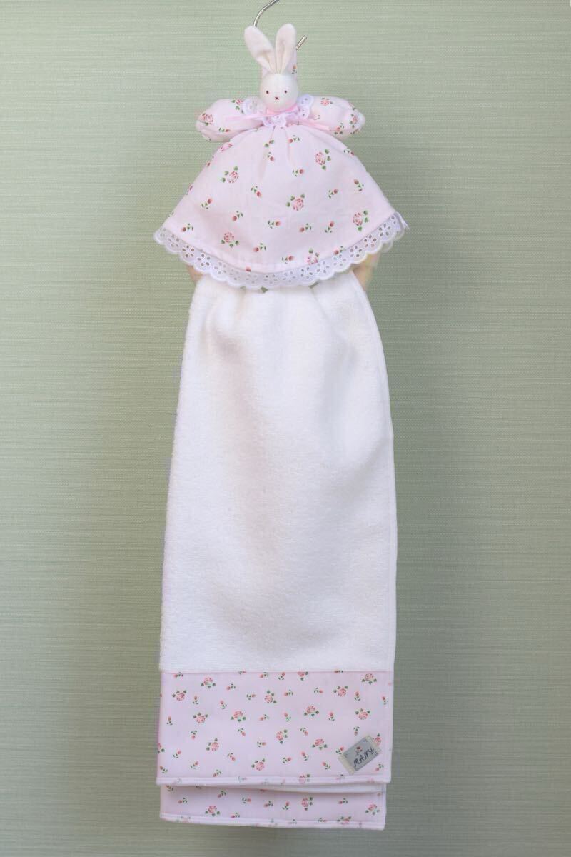 ローズを散りばめた可愛い生地を使ったうさぎタオルリングです。