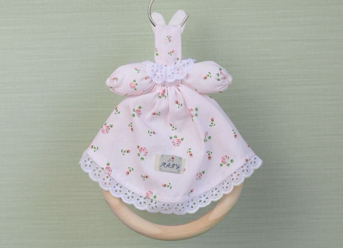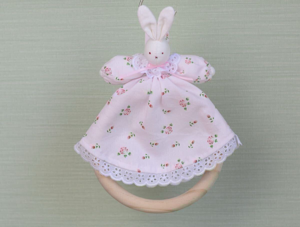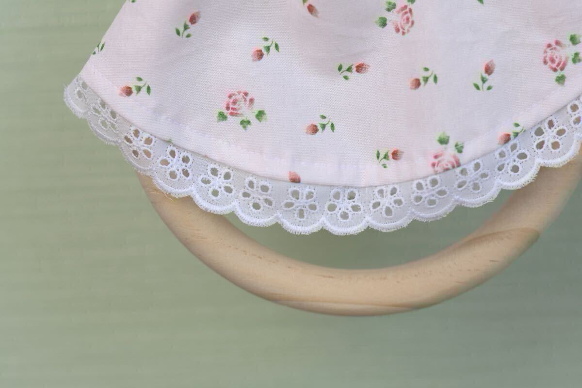 ローズを散りばめた可愛い生地を使ったうさぎタオルリングです。