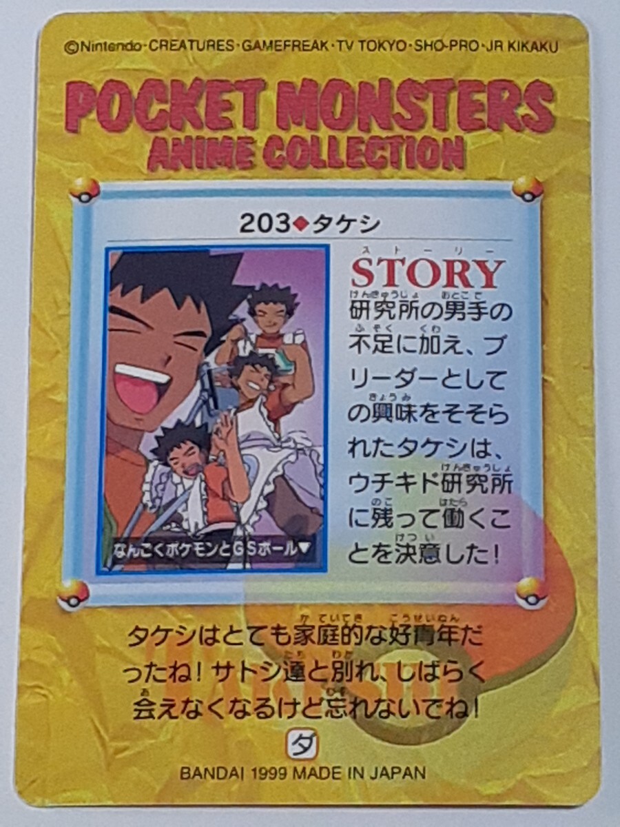 ☆1999年 カードダス ポケットモンスター アニメコレクション №203 『タケシ』  Carddass POCKET MONSTERS Pokemon