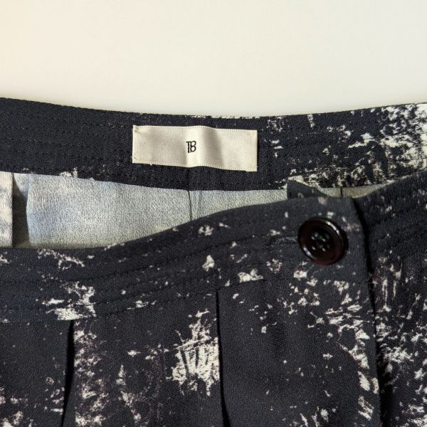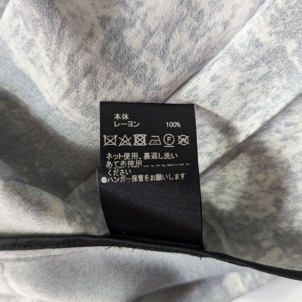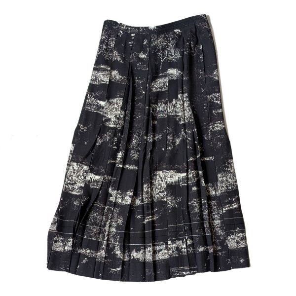 コメント | 北欧のまだ人の手が入っていない森と湖をイメージした、モノトーンネガフィルムのような配色プリント生地を使用したシリーズ。 風景であることを主張せず抽象的に表現したタッチがデザインとなり、しっかりとした重みのあるレーヨン素材はとろみと肉感が特徴です。 ストレートシルエットのボックスプリーツスカートは、ベーシックなデザインながら裾の3本ステッチがモダンな印象に。 2023AW商品 ご使用感なく大変キレイなスカートです。 ボタンとファスナーで開閉 ポケットなし |