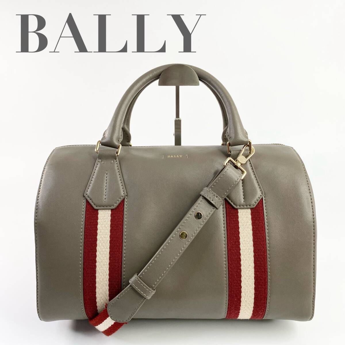 BALLY バリー ボストンバッグ ショルダー付 ハンドバッグ 2WAY グレー ストライプライン ショルダーバッグ