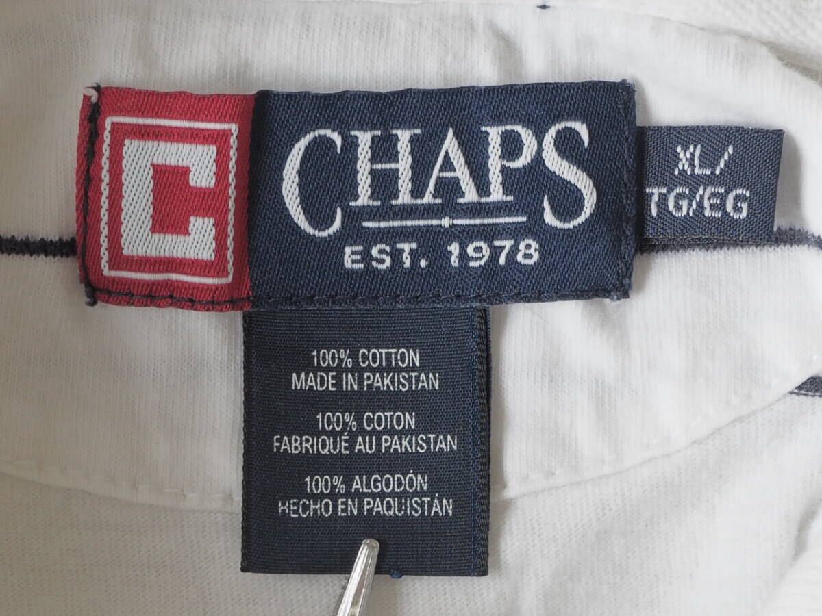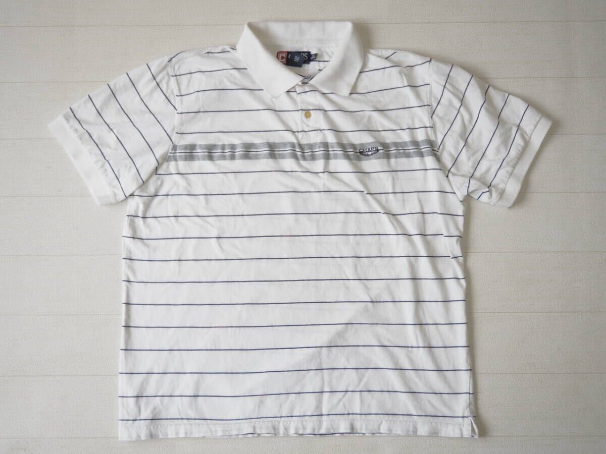 CHAPS チャップス USA直輸入 古着 半袖 ボーダー ポロシャツ メンズ XL ホワイト トップス 中古