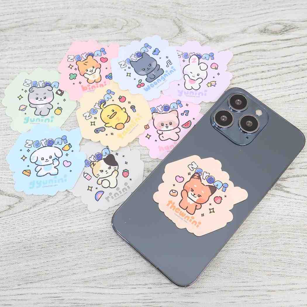 自転車やパソコンいろんなところに貼って楽しい耐水ステッカー ZEROBASEONEとLINE FRIENDSが共同で開発したキャラクター[zeroni]こちらは定番人気アイテム[ステッカー]耐水仕様なので、バイクや自転車などの屋外使用もOKかわいいステッカーいろいろあるのでお気に入りを揃えてくださいサイズ:約65x65mm以内[Made in Japan]