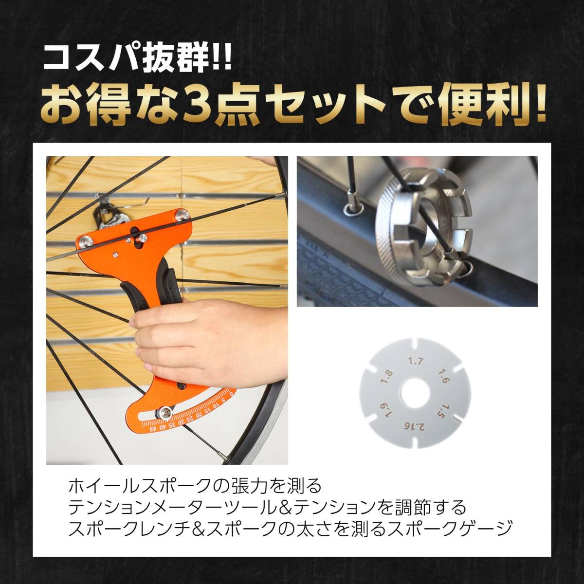 商品名 | nijimomo スポークテンションメーター スポークレンチ スポークゲージ 3点セット 自転車 | ||